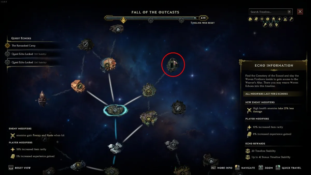在被抹去者墓地的尽头,你会在中间发现一座编织祭坛。与其交互以查看 Echo 网络边缘的空节点。将您的编织回声拖到任何一个空插槽中以创建您自己的回声,因此称为“编织回声”。