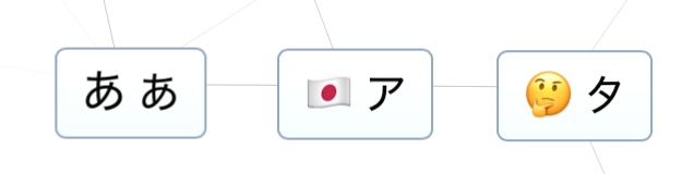 接下来是更多日语,包括あ或两个平假名“a”、A或一个片假名“a”、タ或片假名“Ta”,最后是to。
