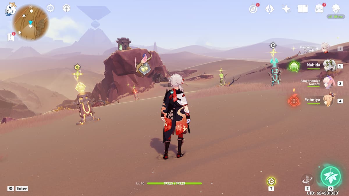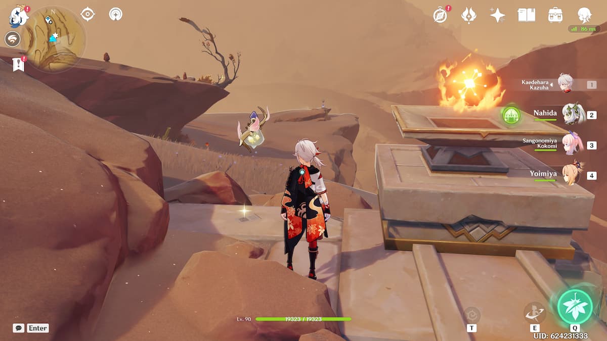 最後四頁撕破的頁面是在沙漠西邊的這個謎題周圍發現的。要解決這個難題,請走到每個元素柱子處。四葉印記將出現,您可以使用它快速到達有相應精英元素埃雷米特敵人的位置。例如,您會在丹卓柱通向的位置找到隱士花環舞者。擊敗每個地點的敵人並掠奪每個解鎖的木箱。將有四張撕破的頁面,每個箱子附近都有一張。解決謎題還將解鎖位於所有四個元素柱中心的豪華寶箱。