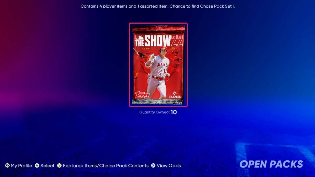 Xbox Game Pass 會員可以兌換 10 個免費的 MLB: The Show 22 包,以慶祝該遊戲在 Game Pass 上發布。每包包含四件玩家物品和一件什錦物品,有機會找到 Chase Pack Set 1。